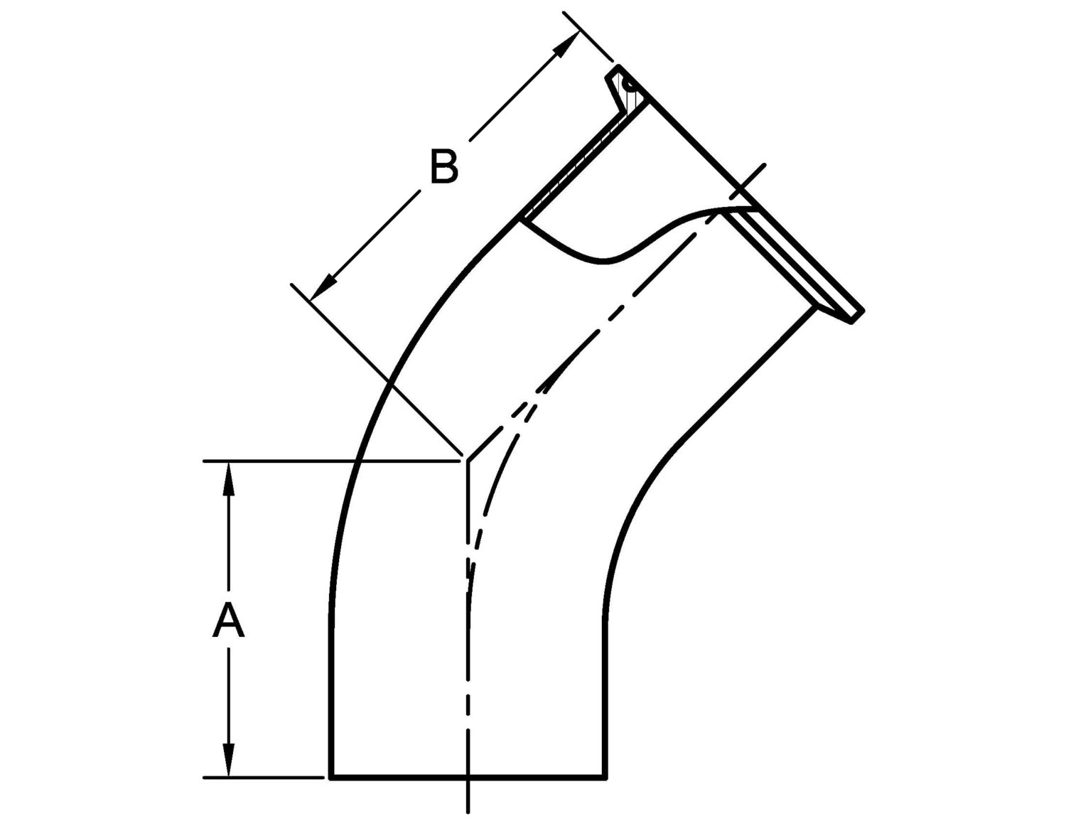 L2KM 45 DEGREE ELBOW, WELD X CLAMP