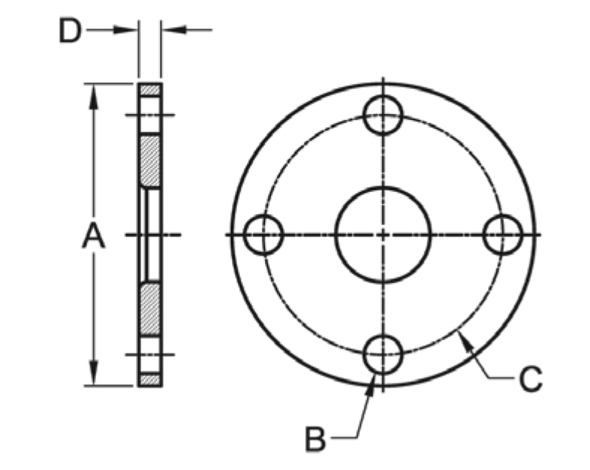 Part Number | Size (inches) | A | B | C | D | STP File |