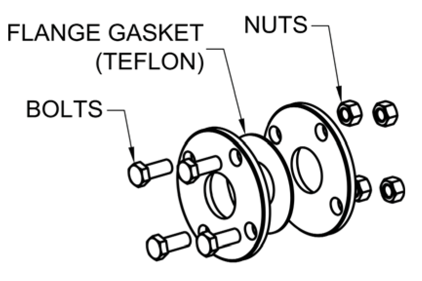 Note: Kit consists of bolts, nuts, and teflon ring style flage gasket (other gasket materials available).