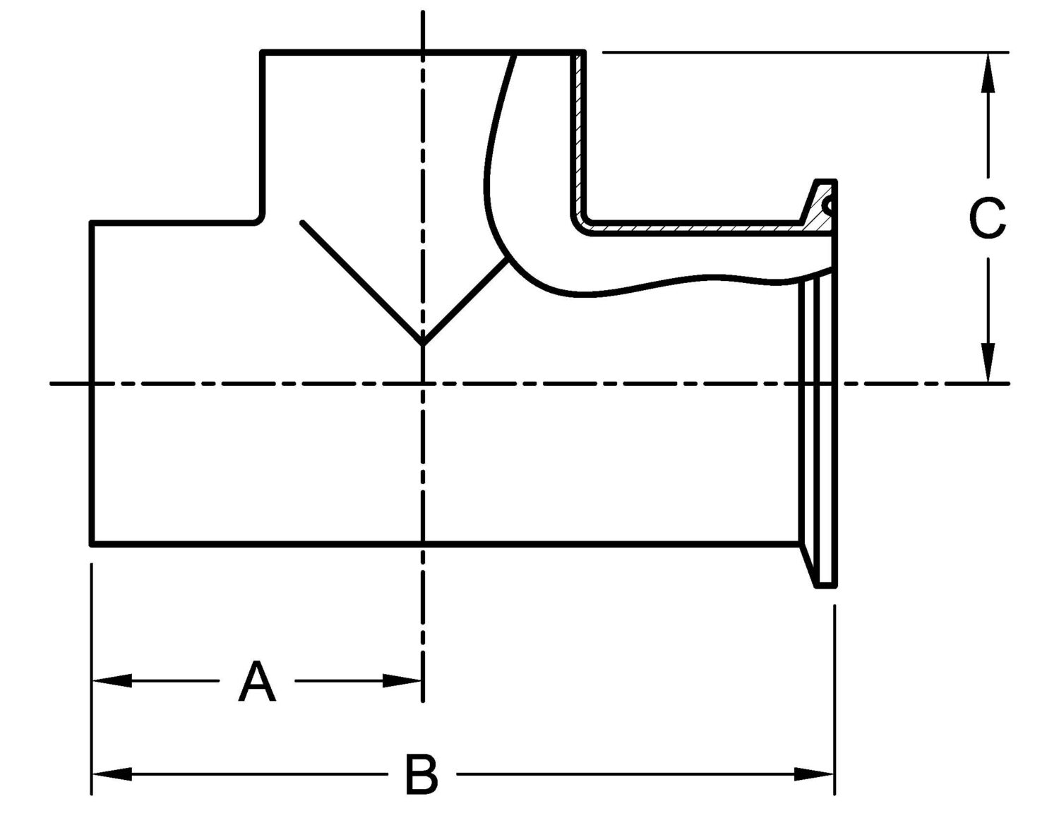 7WMW TEE, WELD X CLAMP X WELD OUTLET