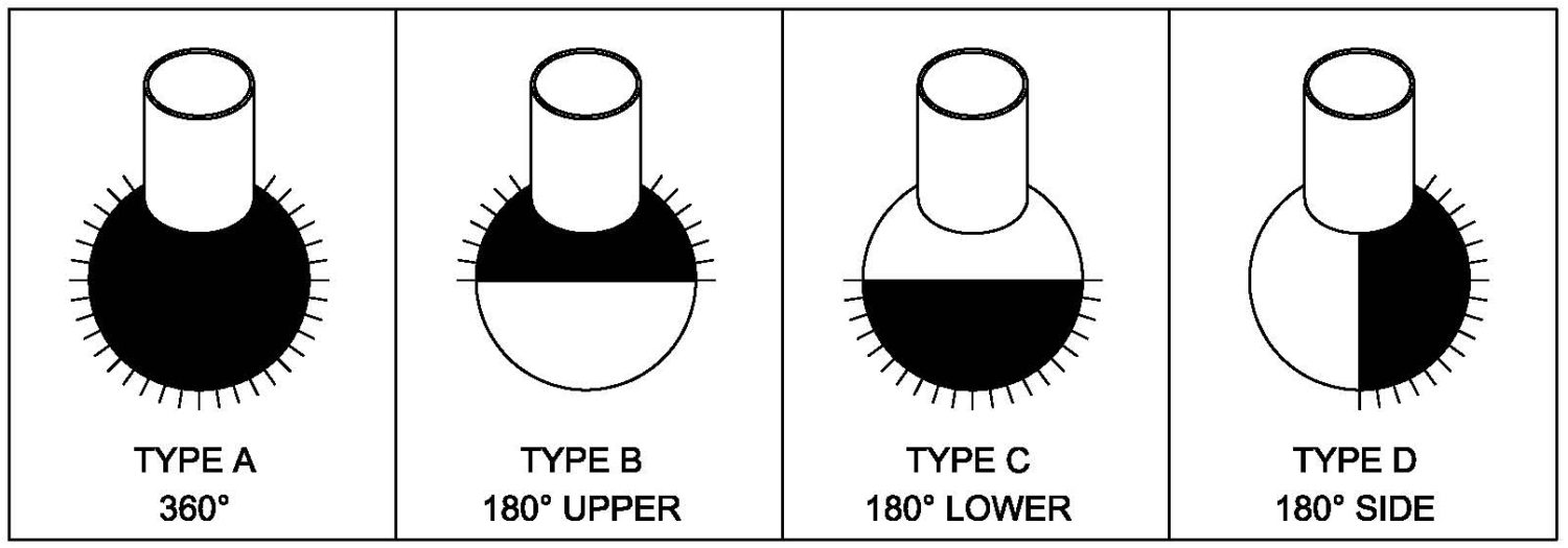 Spray Balls are available in various spray patterns as shown. They are stationary and meant to be mounted to a tube or pipe. Typical uses are in the food and beverage industries for cleaning storage tanks.