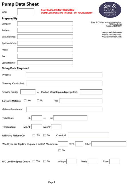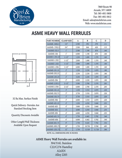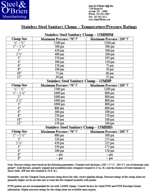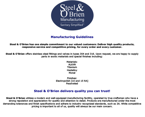 Steel & O’Brien Sanitary & BPE Products Line Card