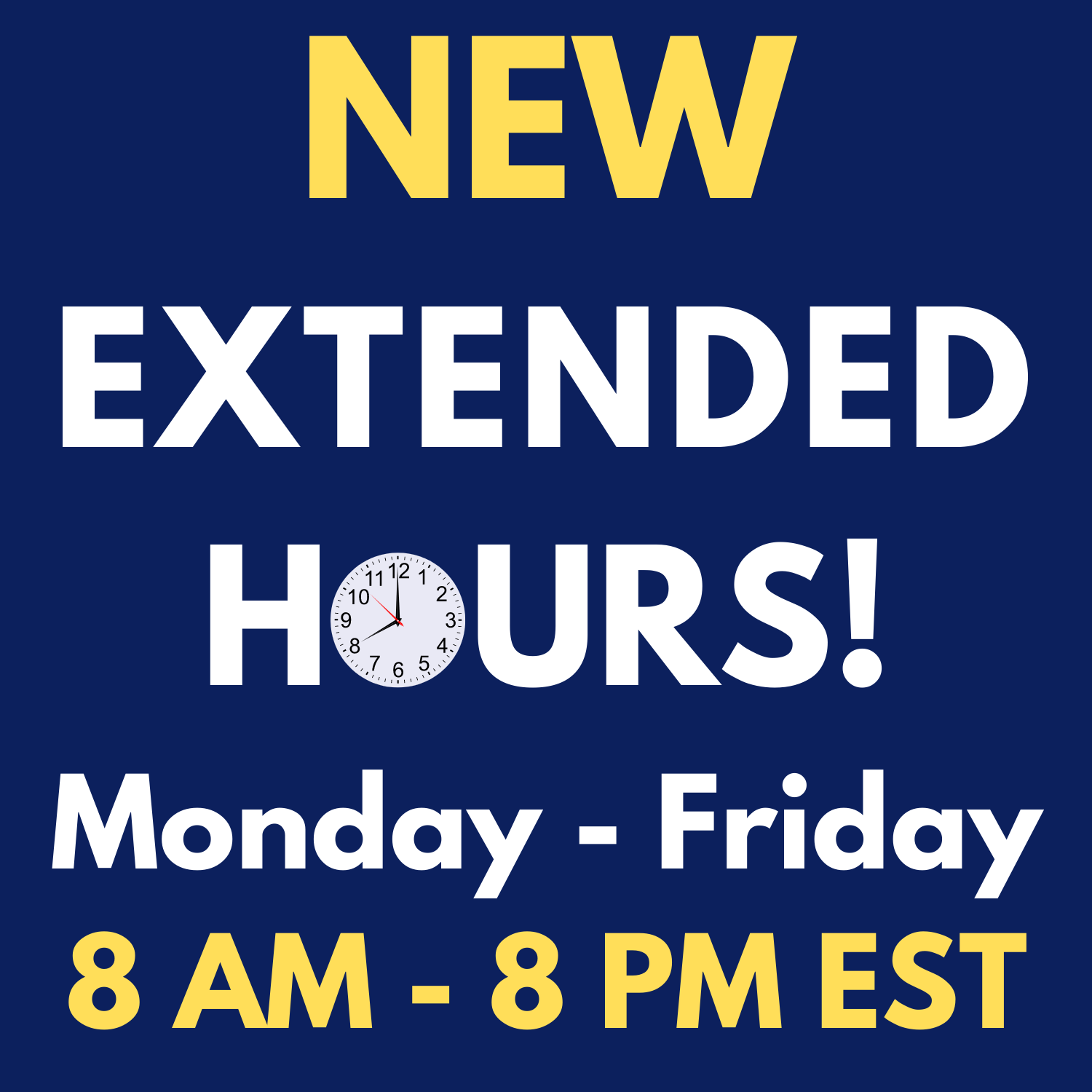 As we continue to redefine the meaning of superior service, we are open and able to ship product from 8:00 a.m. to 8:00 p.m. EST Monday through Friday! We hope that you take advantage of the longer hours and our industry-leading service.